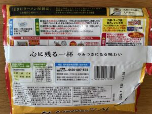 裏面には「お湯270ml」と書いてありますが、実際に作ってみるとレンジで加熱した麺や野菜から水分が出るので、お湯は250mlくらいで十分。それでも濃すぎず、ちょうどいいバランスになります。